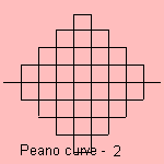 In 1880 the Italian logician Giuseppe Peano (1858-1932) constructed the Peano curve, a base motif fractal which uses a line segment as base. The motif is dividing the line segment in three parts, and making a square up and down the middle part: This leads to a filled square, so the curve is a space-filling