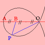 looking at the ancient Greek problem of the trisection of an angle: the angle formed by points ABP is three times the angle formed by AOP